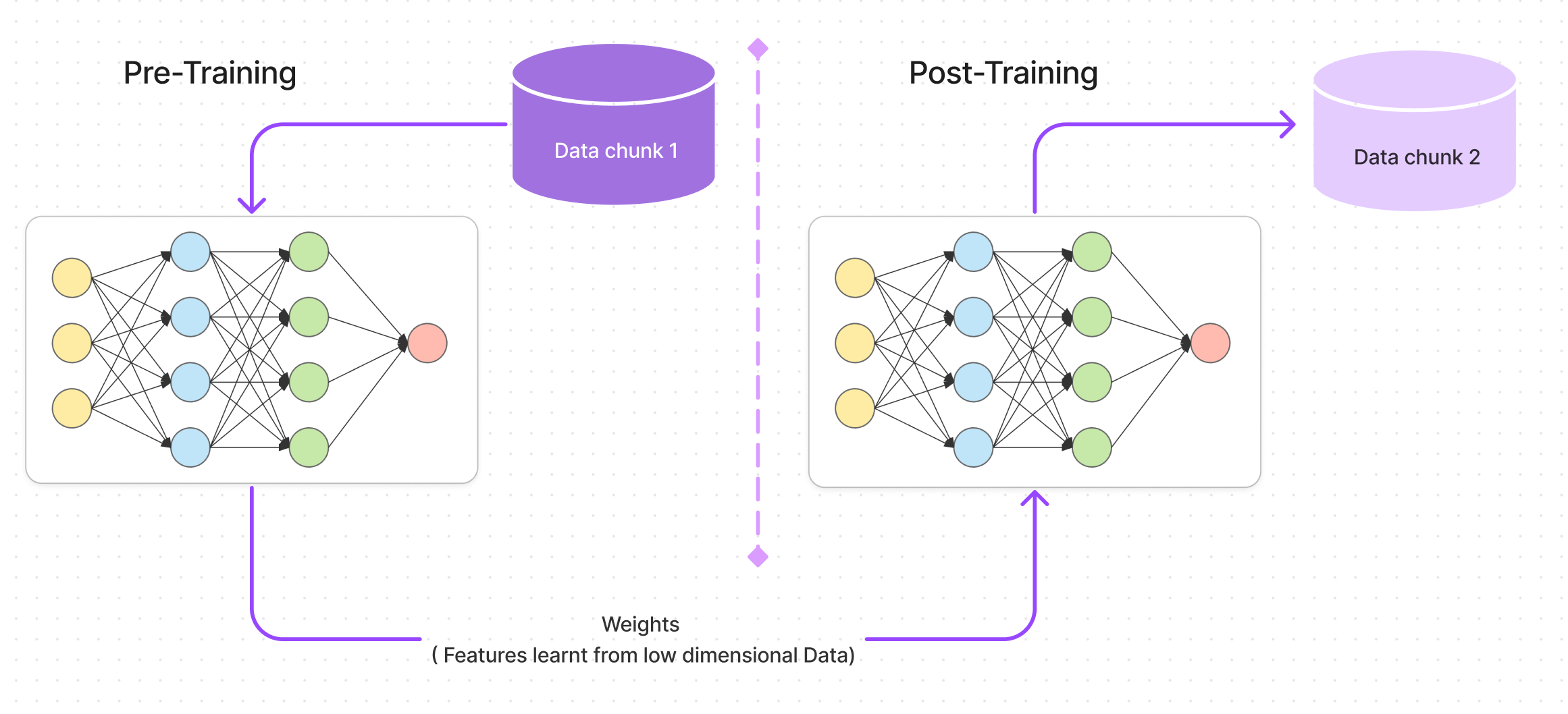 π Unsupervised pre-training: Unsupervised pre-training is the process of training a model on a large amount of unlabelled data before fine-tuning it on a smaller labeled dataset. This can improve the model's performance and reduce the amount of labeled data required for fine-tuning.
